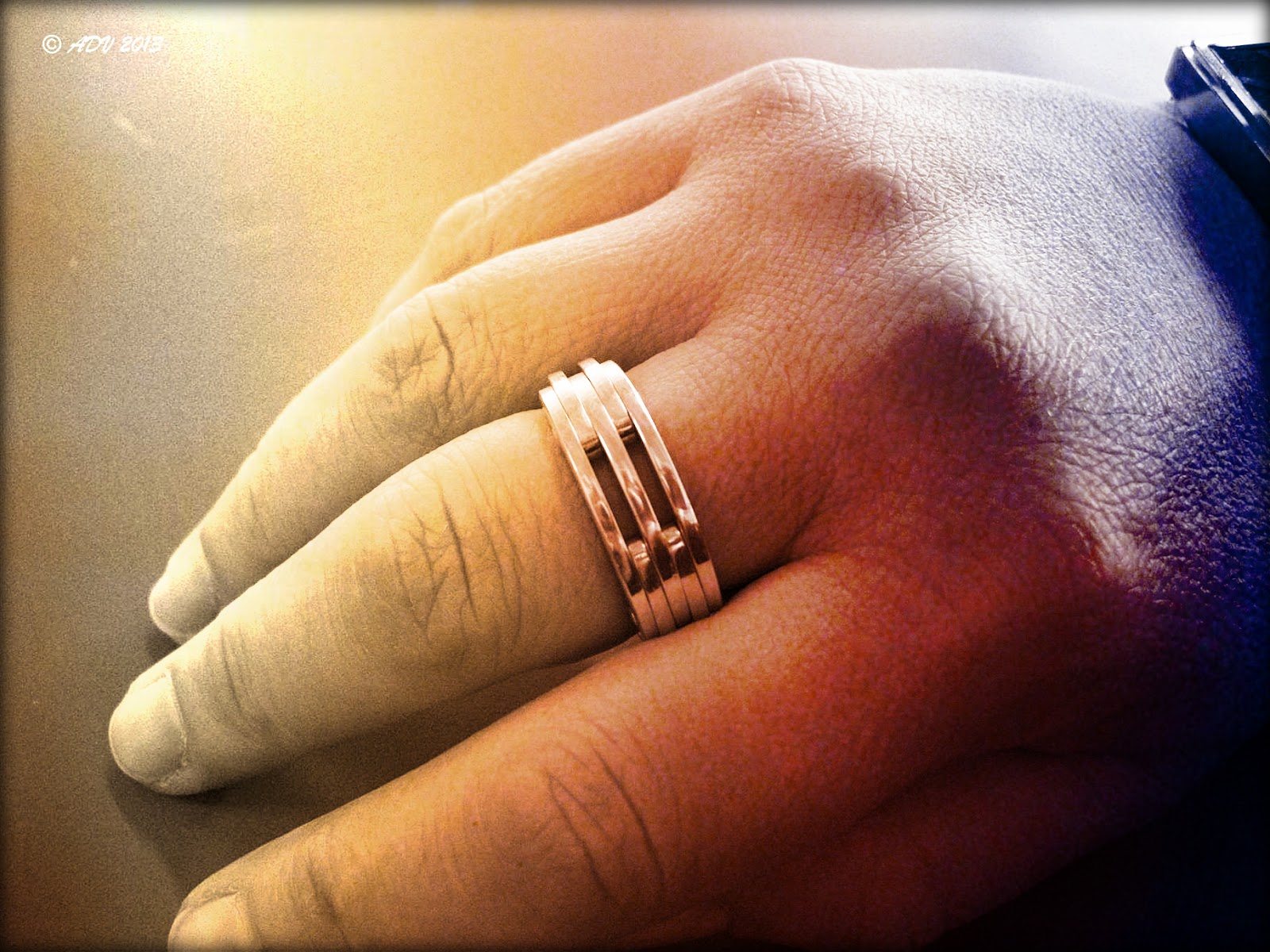 i was inspired to make this one based on a machine-made steel ring that one of my colleagues at my day job wears (he s all into industrial engineering) and it just fit the bill. i had to try and make that in silver!