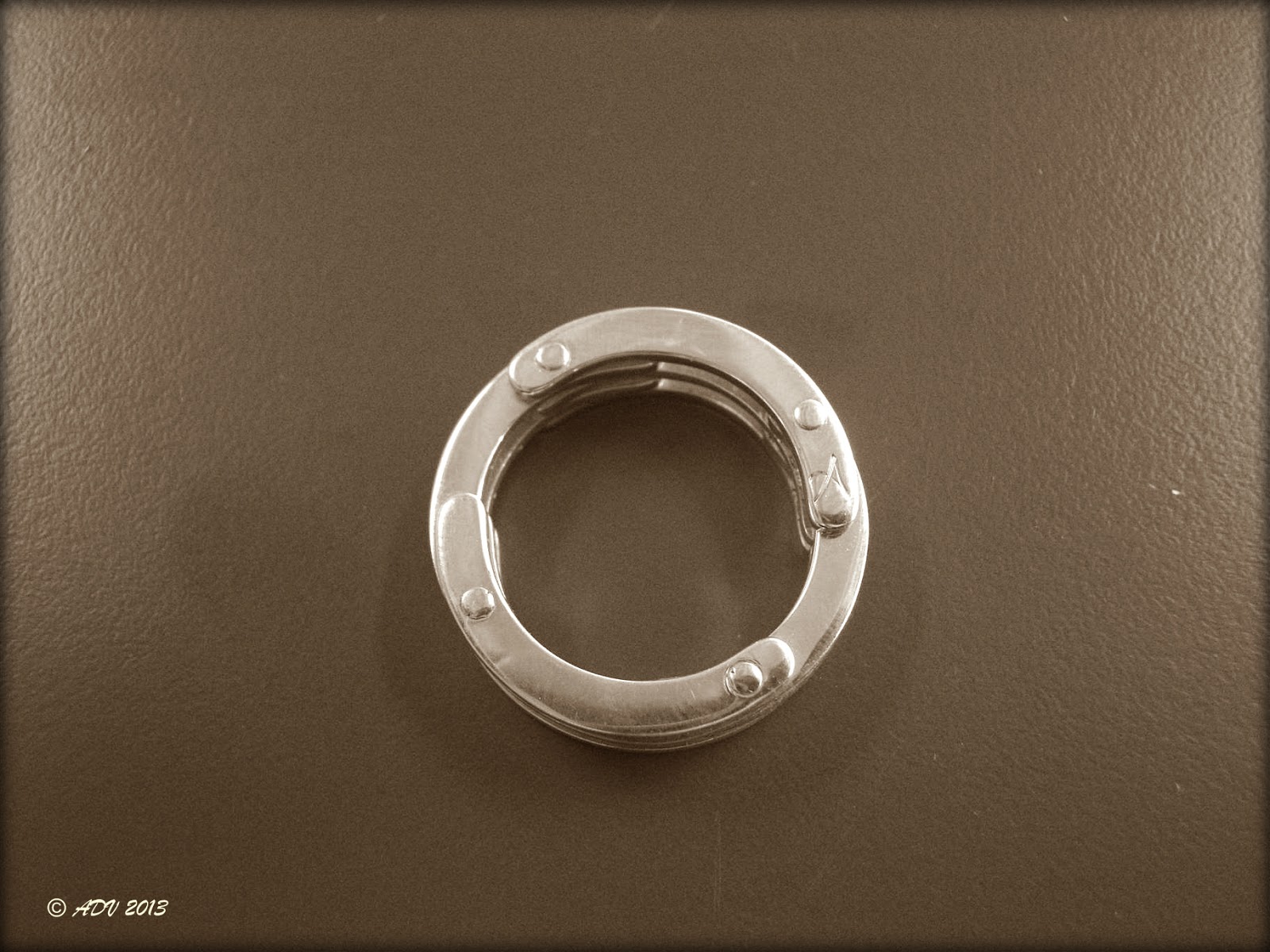 aaaanyway, my main project was again another challenge... making a ring without soldering but only using rivets to keep it all together...what they call in the trade: 'cold connection'.