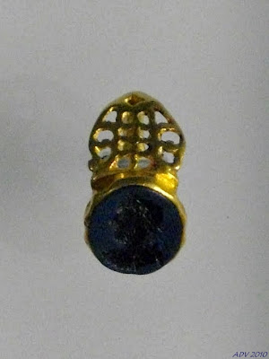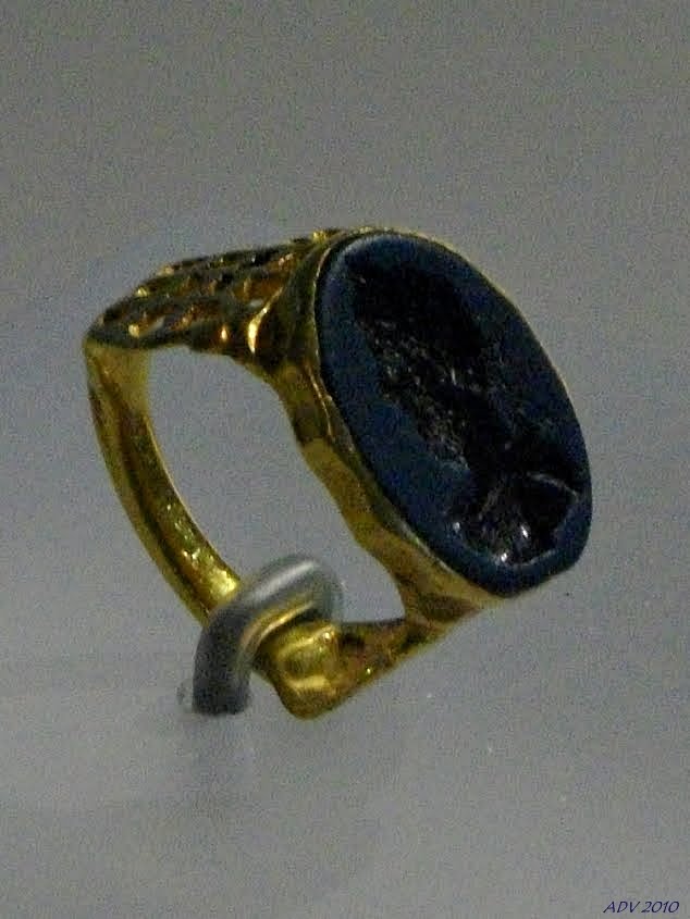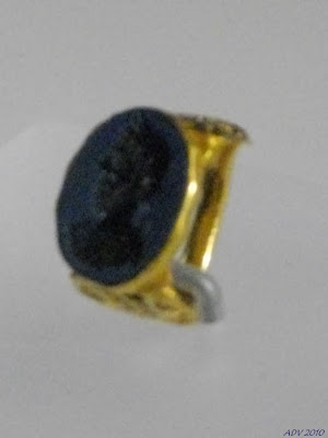 remember Commodus? if you don t remember your Roman history, he was the son of Marcus Aurelius, and depicted as the anti-hero in the movie Gladiator. this gold seal ring depicts him carved in the lapis lazuli stone